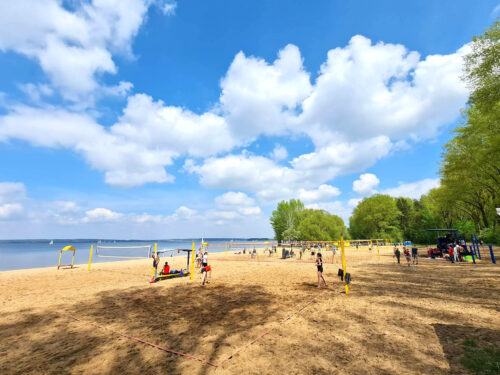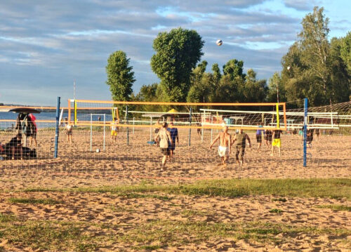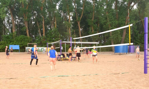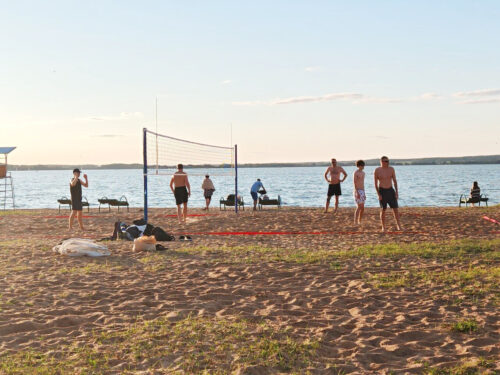 На пляже №2 Заславского водохранилища располагаются 8 открытых оборудованных площадок для пляжного волейбола.