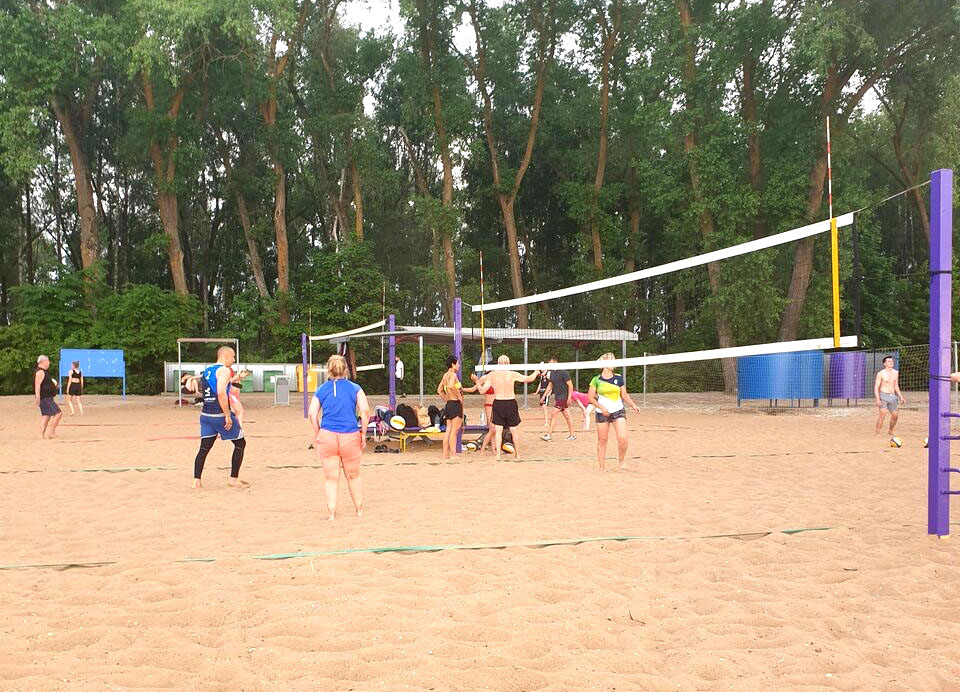 На пляже №2 Заславского водохранилища располагаются 8 открытых оборудованных площадок для пляжного волейбола.