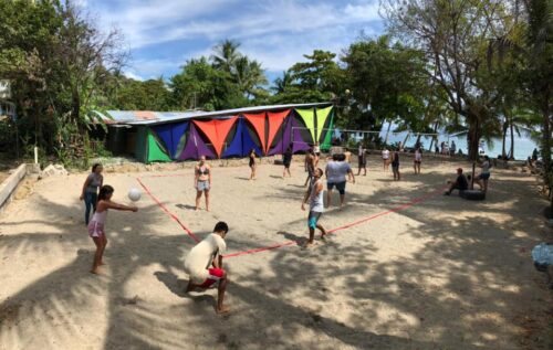 "Cancha Las Pangas Montezuma" - это живописная площадка для пляжного волейбола в стране Коста-Рика на берегу Тихого океана.