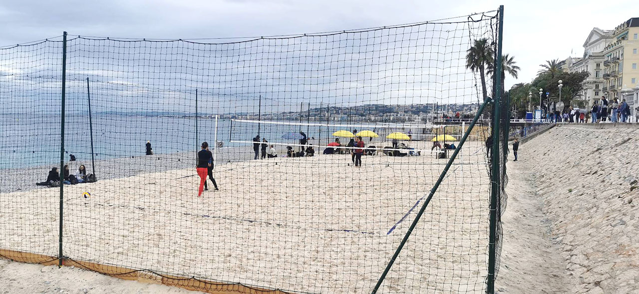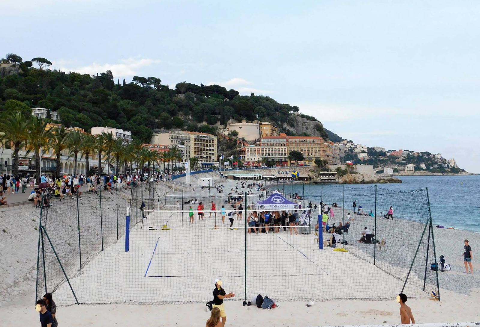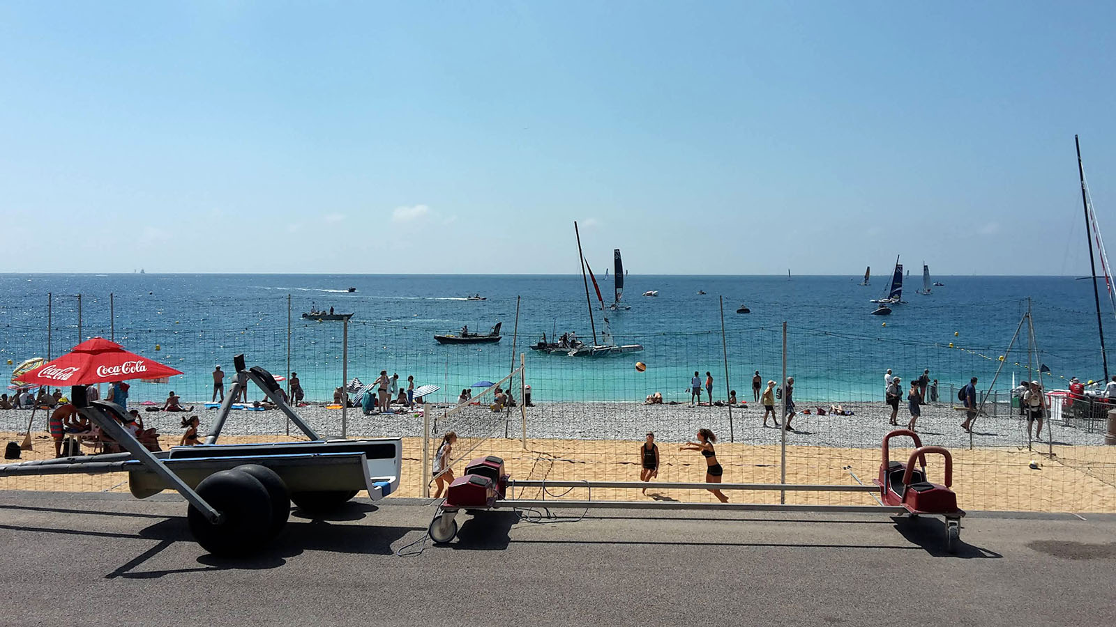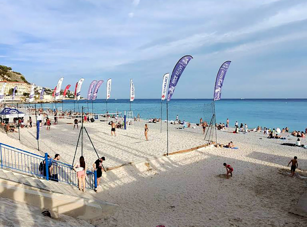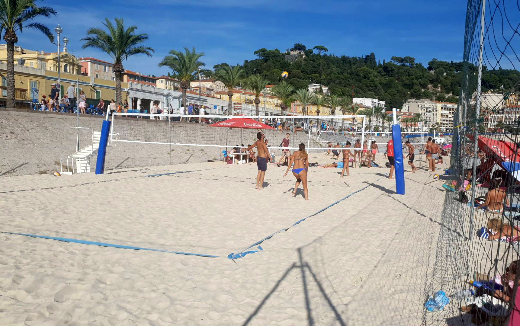 На общественном пляже Пончеттес созданы 2 открытые площадки для пляжного волейбола во французском курортном городе Ницца.