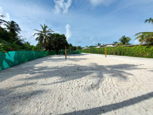 На острове Оривару на Мальдивах располагается одна оборудованная площадка для пляжного волейбола на побережье Индийского океана.