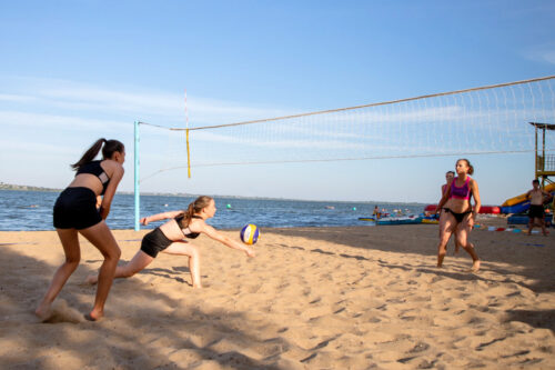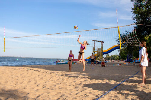 Городской пляж (Днестровск) на берегу Кучурганского водохранилища предлагает одну площадку для пляжного волейбола.