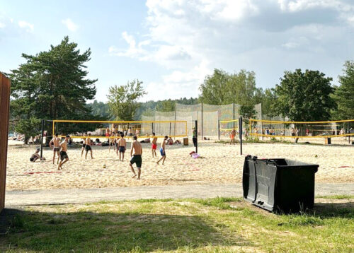 Карьер в Лыткарино является популярным местом для игры в пляжный волейбол с 5-ю площадками и пространством для установки сетки.