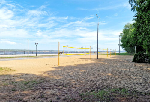 На Московской набережной в городе Чебоксары расположены 3 открытые оборудованные площадки для пляжного волейбола.