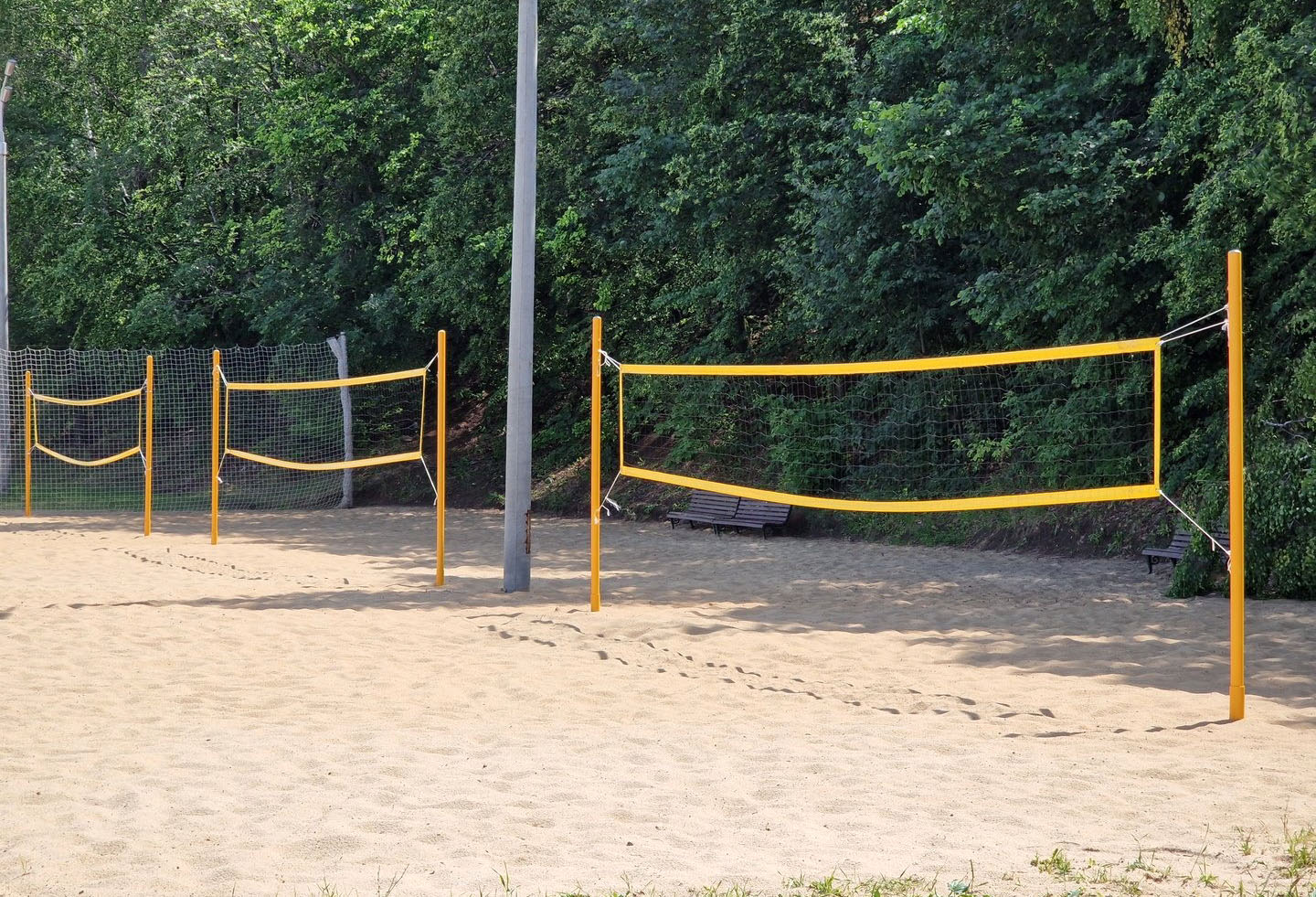 На Московской набережной в городе Чебоксары расположены 3 открытые оборудованные площадки для пляжного волейбола.