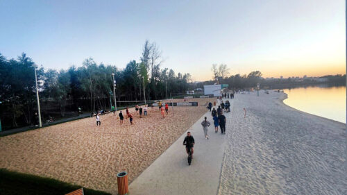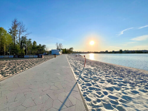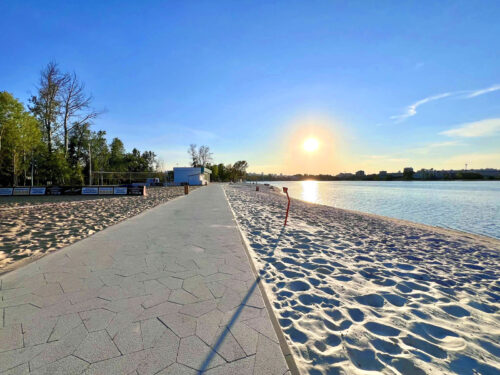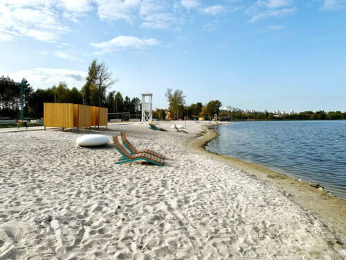 Пляж "Берега" был открыт 6 августа 2023 года. Территория оборудована пешеходными и велосипедными дорожками, скамейками, навесами от солнца, спасательными вышками, туалетами, душевыми и местами, где можно переодеться. На набережной также сделали главную площадь с кафе, перголами, качелями и сухим фонтаном.