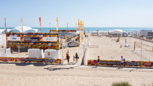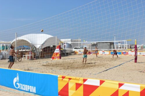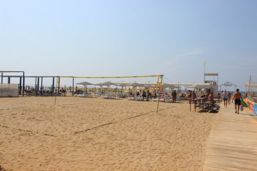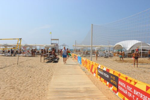 На пляже есть оборудованные корты и пространство для установки своей сетки.