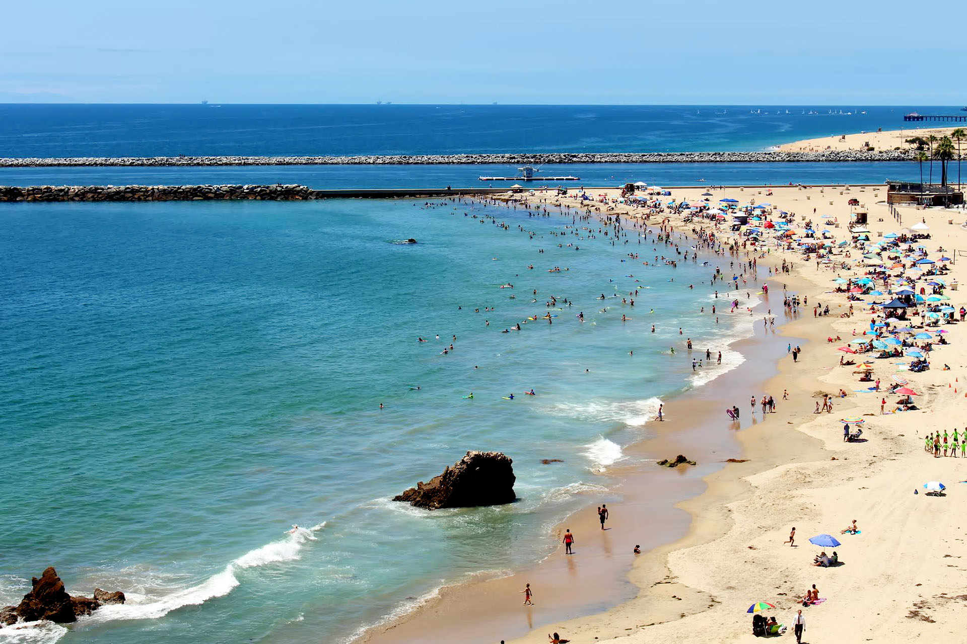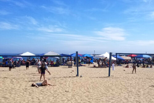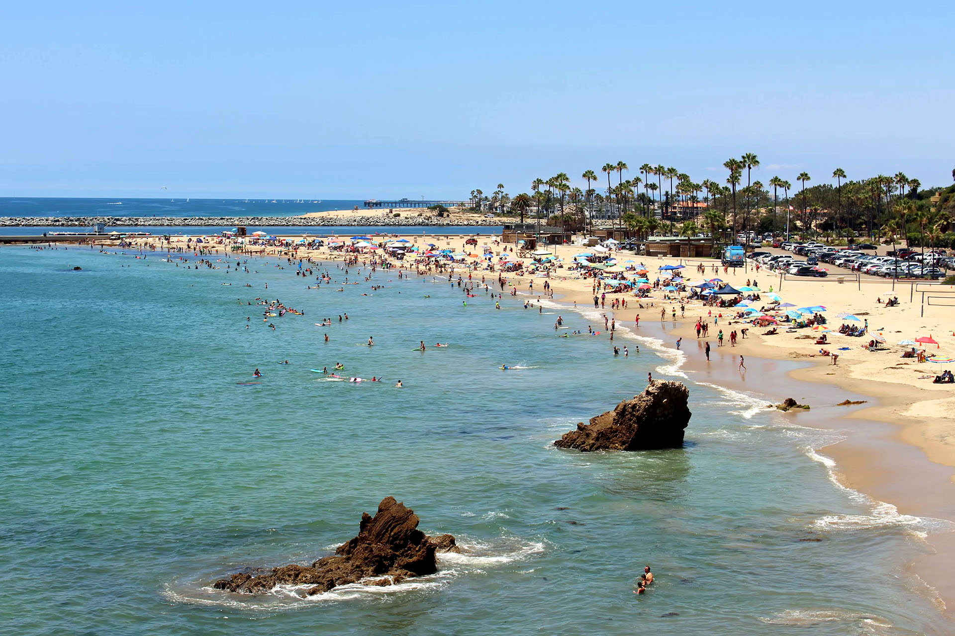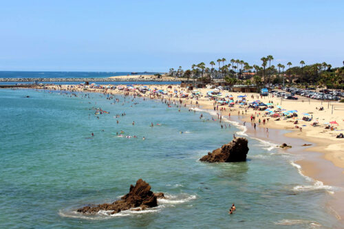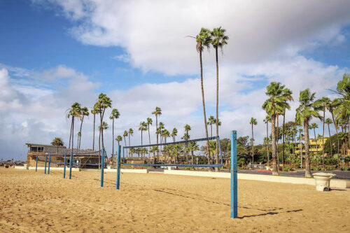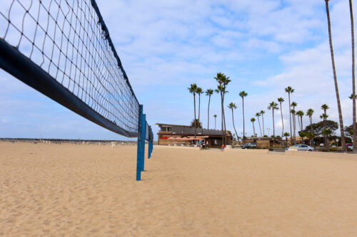 На пляже Корона-дель-Мар (Corona Del Mar) сделаны 10 открытых оборудованных площадок для пляжного волейбола в Ньюпорт-Бич.