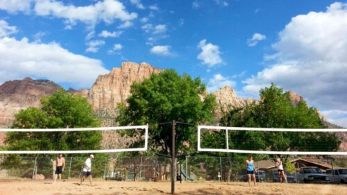 Эти два корта у входа в национальный парк "Зайон" (Zion National Park) предлагают фантастические виды на отвесные скальные образования. Эти обсаженные деревьями корты расположены в городском парке "Springdale Town Park", и местные жители регулярно устраивают здесь игры. Но если после пляжки вы не исчерпали все силы на корте, то смело отправляйтесь в парк и прогуляйтесь по тропе Энджелс-Лэндинг или ущелью Нэрроус.