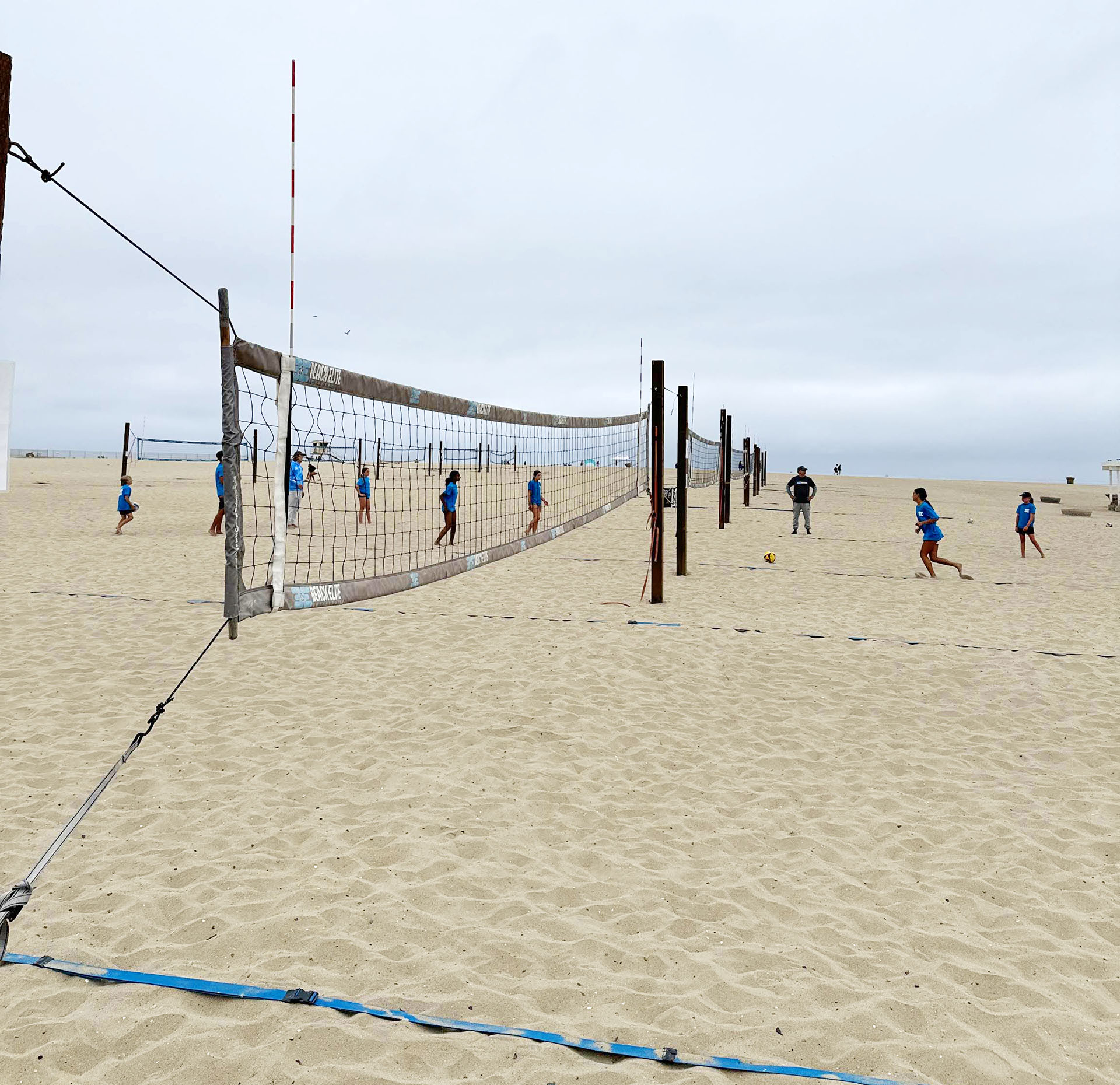 Волейбольные корты рядом с рекой Санта-Ана - это 18 площадок для пляжного волейбола на пляже Хантингтон-Бич.